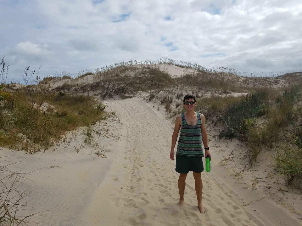 The next morning, we got up with the sunrise, made breakfast, and set out to explore the park. We were hoping to ride our bikes all the way to the North Carolina border, but the trail was a bit too loose and sandy for my 40mm tires to handle, so we headed to the beach instead. To get to the beach, you have to park your bikes at nearby bike racks and then take a short walk over some sand dunes.