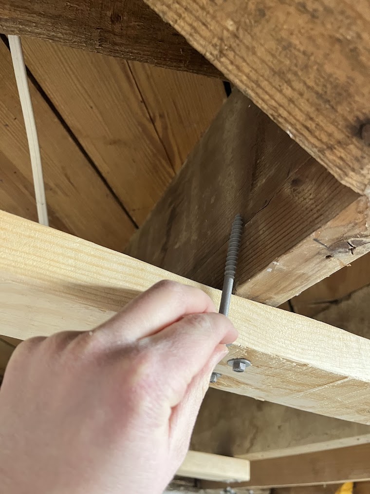 - Big Screws to attach sleepers to ceiling joists: SPAX #14 x 4-3/4 in